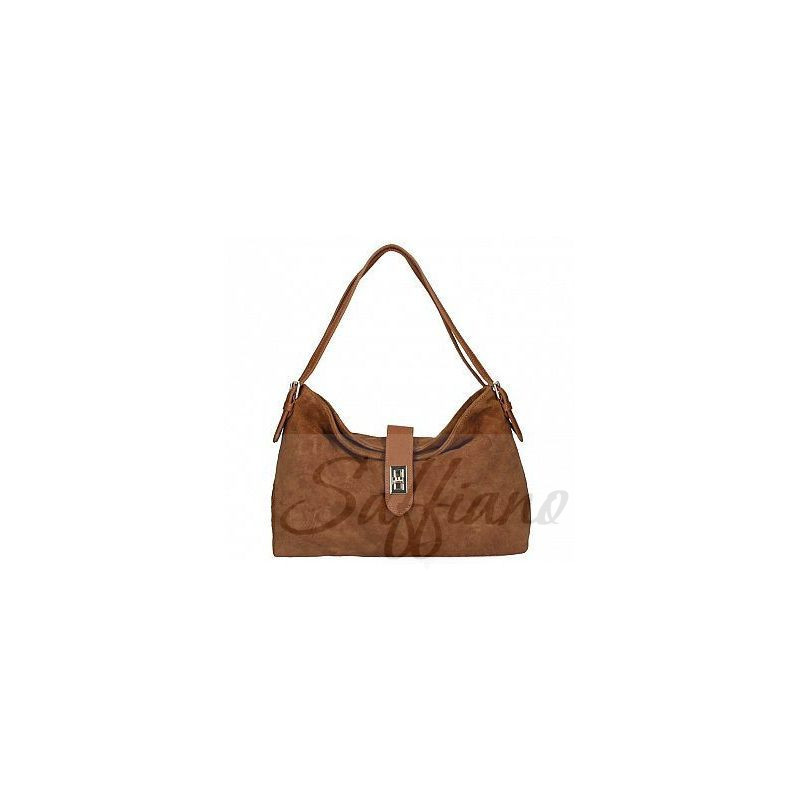 Замшевая женская сумка (Италия). Ручки- из натуральной кожи. Размер: 35см*23см*9 см. Вес- 0,6 кг Внутри сумки есть одно отделение, боковой карман на молнии. Сумка застегивается на молнию. Фурнитура в золотистом цвете. Длину ручек можно регулировать.