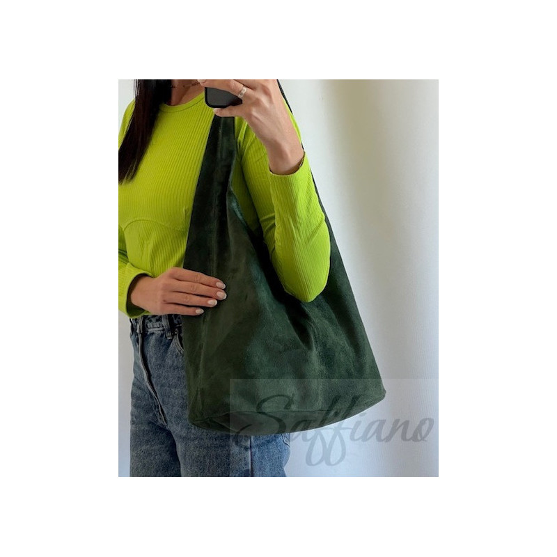 Женская сумка через плечо из натуральной замшевой кожи. Ширина - 35см, высота с ручкой - 60см, толщина - 17 см. Вес - 0,5 кг.