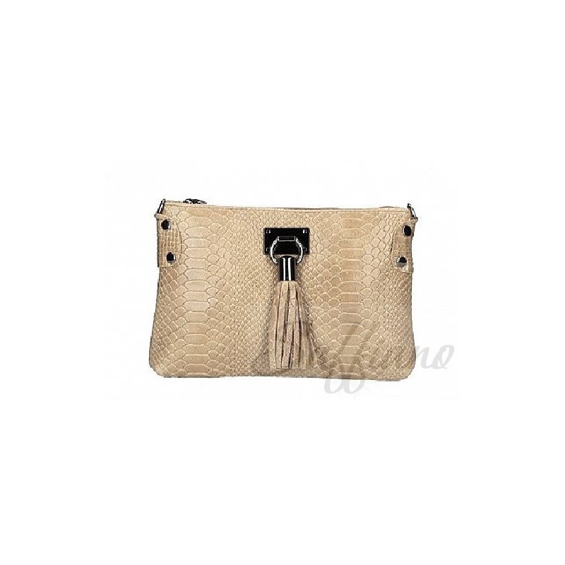 Кожаная сумочка-клатч с тиснением под питона (Италия) в песочном цвете. Размер 25см* 17см*3см