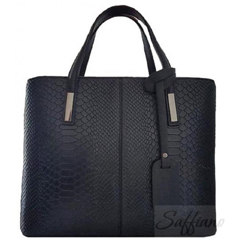 Шкіряна жіноча сумка (Італія) з тисненням під пітона. Кольори: чорний, червоний, синій, яскраво-синій, рожевий, фіолетовий, сірий, фуксії, пісочний, блакитний, рудий, жовтий та зелений хакі. Оздоблення - в чорному кольорі. Розміри: 32см * 26см * 14 см. Всередині сумки є два великих відділення, центральна кишеня на блискавці, бокова кишеня на блискавці. Сумка застібається на блискавку. На дні сумки прикріплені металеві ніжки. Пристібається довга плечова ручка.