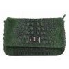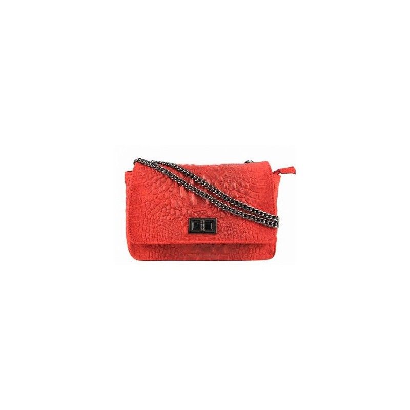 Шкіряна жіноча сумка з натуральної шкіри з тисненням під крокодила плюс натур. замшева шкіра. Ручка у вигляді ланцюжка. "Made in Italy". Колір: червоний, бордовий, рожевий, зелений, жовтий, темно-синій, сіро-коричневий, чорний, темно-сірий, синій і рудий. Розмір: 21cм * 13см * 7см. Усередині сумки є одне відділення і кишеню. Сумка застібається на блискавку і застібку.