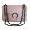 Шкіряна жіноча сумочка на ланцюжку (Італія). Кольори: чорний, рожевий, сіро-коричневий. Розмір 25см х 18cм х 10cм. Усередині сумки є одне відділення, кишеня на блискавці. Плечова ручка у вигляді ланцюжка максимальна довжина 105см.
