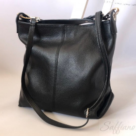 Шкіряна жіноча сумка. Made in Italy. Розміри: 40см * 32см * 12см. Кольори: чорний, червоний, темно-синій, сірий, пісочний, білий, рожевий, мятний, рудий, зелений мох, фуксія, сіро-коричневий. Із зовнішнього боку є кишеня на блискавці. Усередині сумки є два відділення, бокова кишеня на блискавці, бічні накладні кишені. Застібається на блискавку. Довга плечова ручка. Фурнітура в сріблястому кольорі.