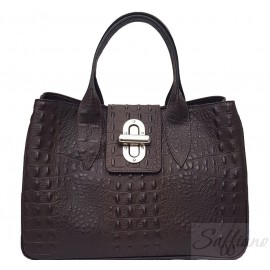 Жіноча шкіряна сумка Italian bags DB11205 з тисненням шкіри крокодила (Італія) в темно-коричневому, рудому, чорному, червоному, темно-синьому, зеленому, білому, фіолетовому, темно-сірому, сіро-коричневому і коричневому кольорах. Розміри: 36 x 24 x 17 см. Вага - 0,9 кг.