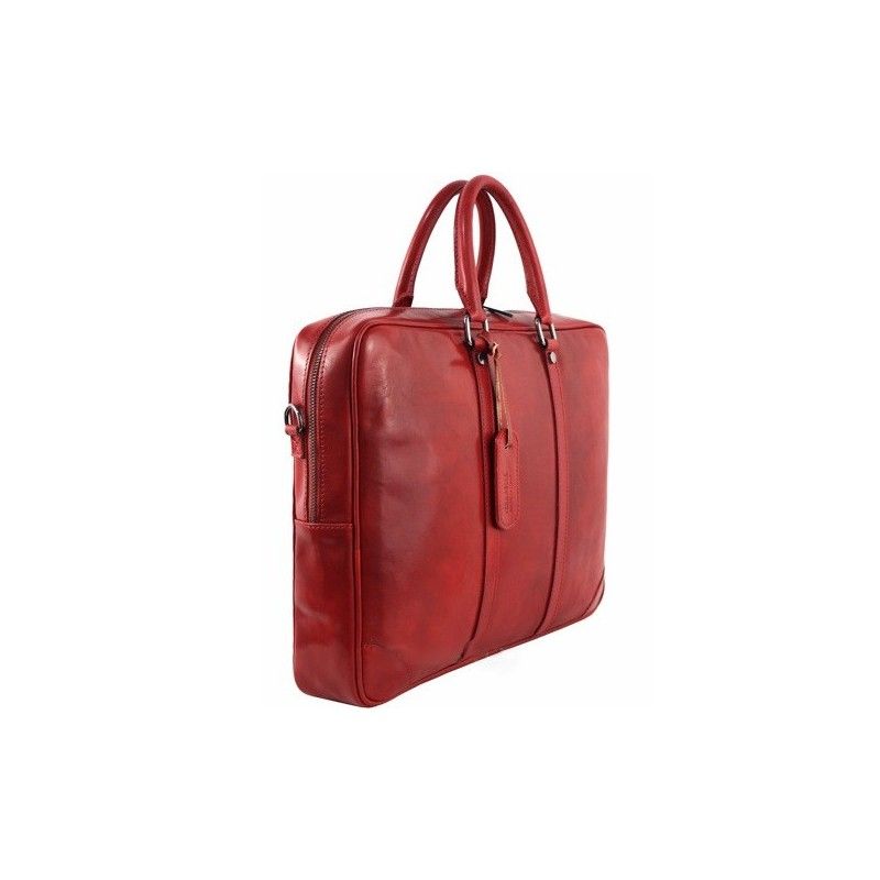 Шкіряний портфель Bottega Carele BC805. Зроблено в Італії. Кольори: коричневий, рудий, червоний, темно-коричневий і чорний. Ширина - 41 см, висота - 31 см, товщина - 8 см. Всередині є велике відділення, бічна велика кишеня на блискавці; бічна кишеня для мобільного телефону і бічна кишеня. Портфель застібається на блискавку. Пристібається додатково довга плечова ручка.
