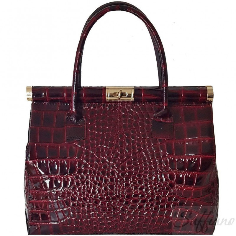 Жіноча розкішна шкіряна сумка Bottega Carele BC901 з ефектом "під крокодила". 100% Made in Italy. В чорному, бордовому кольорі. Розмір: 34см * 25см * 15см.