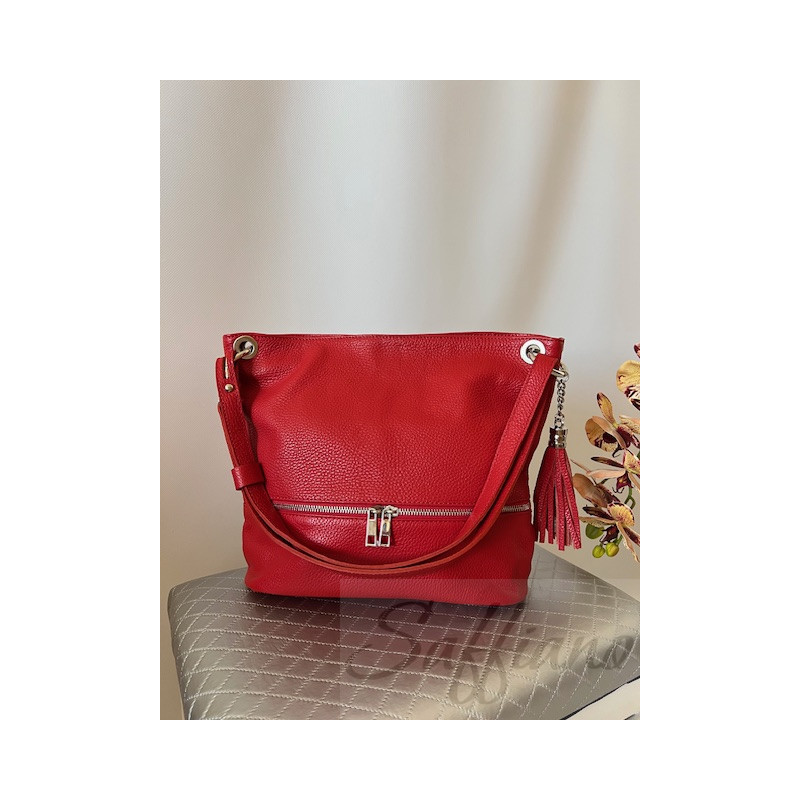 Жіноча шкіряна сумка. Made in Italy. Розмір - 34см * 27 см * 11 см. У сумці є два відділення, центральний кишеню на блискавки, задню кишеню на блискавці, два накладних кишені. Сумка застібається на блискавку. Зовнішній кишеню на блискавки. Довжину плечової ручки можна регулювати (збільшити в 2 рази)