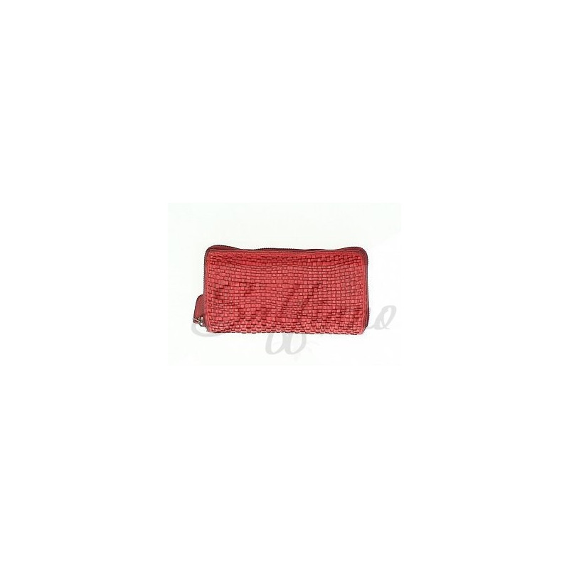 Шкіряний жіночий гаманець на блискавці з плетеної шкіри у темно-коричневому, темно-синьому, рудому, червоному, гірчичному та зеленому кольорі. Розмір 18см * 10см