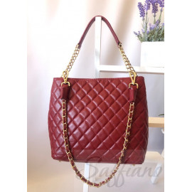 Жіноча сумка з натуральної стеганой шкіри Bottega Carele BC225 (Італія). Розмір: 31см x 27см x 17.5 см. Вага - 1 кг. Усередині сумки є два великих відділення, центральна кишеня на блискавці, бокова кишеня на блискавці і кишеня для мобільного телефону. Сумка застібається на блискавку. До дна сумки прикріплені металеві ніжки. Пристібається довга плечова ручка у вигляді ланцюжка. Фурнітура в золотистому кольорі.
